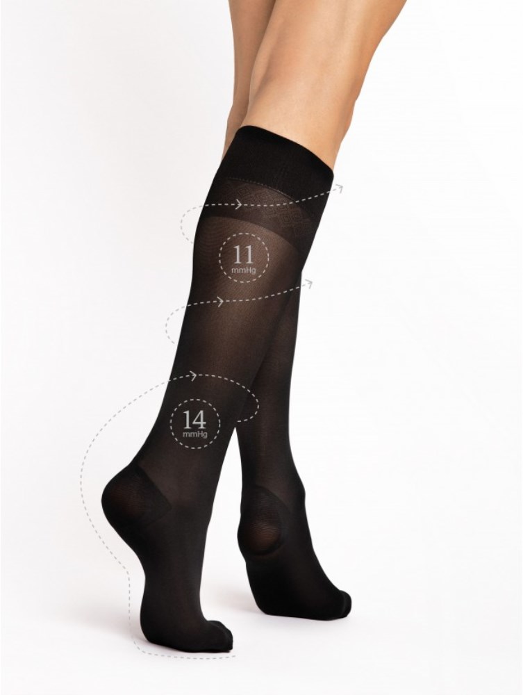 Κάλτσα τρουακάρ Διαβαθμισμένης συμπίεσης που προορίζονται για πρόληψη φλεβικής ανεπάρκειας και κιρσών, βοηθώντας την κυκλοφορία του αίματος. Η συμπίεσή τους είναι 11-14 mmHg και τα χαρακτηριστικά τους περιλαμβάνουν ενισχυμένα δάχτυλα και φτέρνα, καθώς και ανατομικά σχεδιασμένη περιοχή του ποδιού.